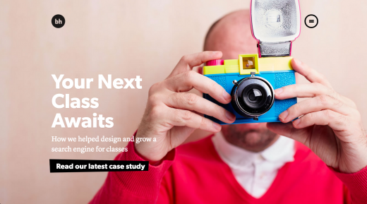 图 库照片依然在设计中占有一席之地,但是对于大多数最新出现的网站来说,图库照片开始采取高质量的专业摄影照 片,它们通常是独一无二的,专为网站自定义拍摄的。使用自定义摄影比仅选区图库照片在设计方面取得了更大进步,它让你的网站独一无二,其他网站无法使用同 样的照片。比如,Grain and Mortar网站的自定义照片使用了该网站的大标题,这展现出个性化效果,因为照片上的人和办公场景都是在 Grain and Mortar真实存在的,毕竟没有假办公空间的图库照片!